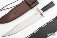The very best in materials and workmanship is what makes performance like this possible. The blade is made of CPM-3V tool steel. It’s costly and difficult to fashion, but the resulting blade it yields is virtually indestructible. The handle also plays a big role in the overall performance. It has a double quillion guard, bolster, and pommel made of highly polished 300 series stainless steel and a gorgeous black linen Micarta handle. It will easily accommodate a wide variety of gripping methods while serving as a very formidable impact weapon as well.
