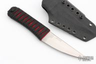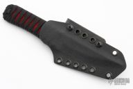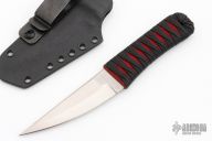 This KTK by Auxiliary Manufacturing features a satin finished blade with multi-grind, .168" blade stock and 1.098" blade depth. The handle has epoxied black cord wrap over red cord. Comes with a kydex neck sheath. Excellent condition.