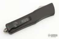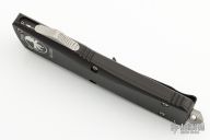 This Combat Troodon OTF automatic features a black blade with a standard edge and a black aluminum frame. Stainless steel clip. Glass breaker. Serial number 01936 and dated 02/2009. Comes with original box, sheath and papers. Excellent Condition.