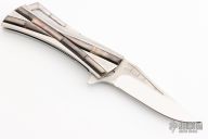 A native of Japan, Koji Hara was born in 1949 in Imari City, and is one of the most traveled of Japanese knifemakers, attending shows throughout his home country as well as over the United States and Europe. When he began making his first knives in 1988, they were his versions of Bob Loveless designs. Three years later he held a one-man knife show in Seki City, Japan, heart of the production cutlery industry. It was at this point in his career that he realized he had to make and sell knives of his own concept and design if he was going to succeed. In 1994 Koji had become a Probationary Member of the American Knifemakers Guild, and in 1997 a Voting Member. During this period he was participating in at least five American shows per year, and would soon be attending shows in Europe. Annually, this prolific maker attends two knife shows in Japan, in addition to having maybe two one-man shows, usually in smaller communities, where collectors don't visit the larger cities. He feels these small shows enable more and more people to become familiar with custom knives. He has received awards for his folders such as "Best in Show" and "Most Innovative" in several international knife shows. Koji primarily uses a powdered stainless steel known as Cowry-Y, made by Daido Steel in Japan, for his blades. It holds an excellent cutting edge and polishes to a high mirror finish. Although one of the drawbacks of powdered steel is its weakness towards lateral impact, this can be corrected through proper heat-treating. Koji also makes knives featuring ATS-34, D-2, 440C and other steel blades, based on customer preference. His preferred method of making blades is via stock removal. A folder specialist, he often carves the handle material into a terraced landscape to feature his classic "Air-Step" design.