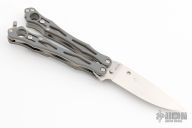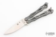 Spyderco's original SmallFly was a uniquely different "spin" on the balisong, or Filipino butterfly knife. Now this remarkable design is back with this special limited featuring full-flat-ground, drop-point blade profile crafted from CPM-Cru-Wear. Like the original, it features skeletonized twin handles with full stainless steel liners and peel-ply-textured Gray G-10 scales. The Round Holes at the butt end of both handles reflect Spyderco's iconic trademark and help achieve optimal balance for high-speed manipulation. A spring-loaded latch attached to the "free" handle secures the handles together in the closed position, while the removable wire pocket clip may be attached to either side of both handles as both a carry option and tactile index.
