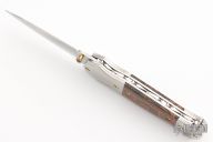 At the age of 14, I began my lifelong profession by becoming the third generation of knife makers in my family. I learned the trade by assisting my father and grandfather in our family's knife making business in the Uthai Thani province of Thailand. In order to continue to learn I attended the technical school and after graduating in 1982, I worked as a trainee with a knife making team. It was here that I first became known for my ability to carve pearl. In 1984, I opened my own shop. Just like my father and grandfather, I carry on the tradition of handcrafting each of my knives by using only the most basic equipment. I believe that the beauty of knife making is being able to feel what you are doing and having a true vision of the knife you are creating. I make folders and balisongs and my preferred handle material is carved or inlayed pearl, but it is very dangerous to work with as it will crack with the slightest error. For this reason, the number of knives I can make is limited to the mistakes I make. Because most of my knives go in collections I use a great deal of mosaic damascus created by Robert Calcinore and Tony Metsala. I believe this steel radiates boldness and brings my knives to life. I also use ATS-34, because it is strong and good for daily use. My personal favorite is Chad Nichols stainless Damascus steel, because it is beautiful and works well for everyday carry knives. Another characteristic of many of my knives is my spring mechanism. Suchat's work was displayed at the Antique Arms Show in Las Vegas in January 2011. R.B. Johnson was impressed with the quality and pricing of Suchat's knives and purchased two of them, and later bought three more in Atlanta at the Blade Show. Corrie Schoeman, a long standing member of the South Africa Knifemakers Guild, who was on the evaluation team for many years stated, "The knife that Suchat made is I think may be the nicest one I have ever seen. It is beautiful." Suchat's knives were on display at the Texas Knife Show in April 2011. Johnny Stout commented that they were "high quality and a great bargain for the price"" and Warren Osborne noted that "they are very nice knives". After seeing Suchat's knives at the 2011 Blade Show, Joe Kious remarked that "these knives are absolutely magnificent and an incredible value."