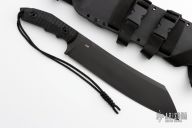 To protect against reflections and corrosion, the MK-11 is additionally coated with a black PVD coating. For the CNC-manufactured handle made of impact-resistant G-10, Pohl adopted the proven handle design of its MK-9 combat knife, but dispensed with the additional subhilt. As with the MK-8 and MK-9, the handle ends with a precisely milled striking element. In order to be able to carry the MK-11 optimally in the field, the scope of delivery includes a very elaborately manufactured sheath made of 2.5 mm thick Kydex®. The two leg straps allow a comfortable attachment to the thigh. To secure the MK-11 to the hand, it is equipped with a knotted lanyard.