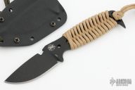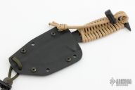 This HEST II Assault Survival knife by DPX Gear has a black drop point blade with integral bottle opener, hex tool, and thumb ramp/ wire strippers. 3/16" blade stock, 1-3/16" depth. Handle is paracord wrap, with glass breaker/ pry bar/ lanyard hole. Excellent condition. Comes with black kydex sheath.
