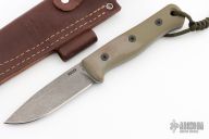 The F4 is our general purpose bushcraft style survival knife. Its 4" blade is robust enough to withstand the toughest survival situations, yet refined enough to breeze through any bushcraft task. Constructed from 5/32" thick CPM®3V high-alloy steel, these knives are exceptionally durable. The spine will rain sparks from a ferro rod or scrape cedar bark for tinder. The sturdy full tang is skeletonized to reduce the overall weight of the knife, making the F4 an ideal carry companion in the field or around town. You'll find the ergonomic 5" handle has no hotspots, providing a seamless interface between your hand and the tool. Whether you're crafting a bow drill or field dressing an elk, the F4 will get the job done right.