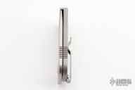 This Kadima Utility Folder from Darriel Caston features a drop point blade with stonewash finish. The handle is comprised of a single bead blast finish titanium scale with integrated lock bar. Comes with zipper case. Excellent condition.