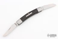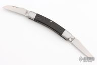 This slipjoint by Matt Collum was made for the 2023 Waterville Custom Collection. It features hand rub satin finished blades with nail nicks. The handle has 416 stainless steel bolsters, ebony wood covers, 410 stainless steel liners, stainless steel spring. Stainless steel escutcheon. Has half-stop, flush in all positions. Comes with a zippered case. New from maker at the 2023 Blade Show.