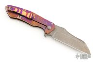 This Framelock Flipper by Turner Knife & Tool features a Doug Ponzio Mosaic Damascus blade. The handle features a sole authorship integral titanium Damascus frame with a matching tip up pocket clip.  Nice action, detent and blade seating. Includes the original box and COA, dated 4-2023.  New from Maker!