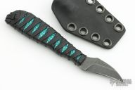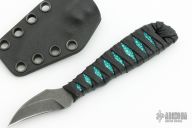 This Tsume by Auxiliary Manufacturing features an acid tumbled blade .110" blade stock and .725" blade depth. The handle has epoxied black cord wrap over Tiffany Stingray. Comes with a kydex neck sheath. New from maker!