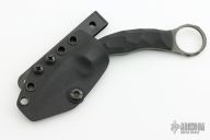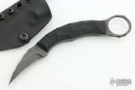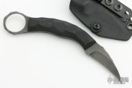 This Karambit by Auxiliary Manufacturing features an acid tumbled blade with textured spine, .140" blade stock and .696" blade depth. The handle has black G-10 scales with black linen micarta pins. Comes with a kydex sheath with a clip. New from maker!