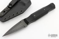 This Pocket Rocket by Auxiliary Manufacturing features an acid tumbled double-edged blade with .124" blade stock and .982" blade depth. The handle has black linen micarta scales. Comes with a kydex sheath with clip. New from maker!