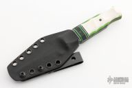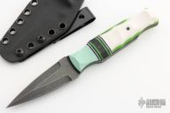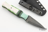 This Pocket Rocket by Auxiliary Manufacturing features an acid tumbled double-edged blade with .135" blade stock and .964" blade depth. The handle has mixed G-10 scales. Comes with a kydex sheath with clip. New from maker!