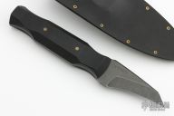 This Pocket Rocket V3 by Auxiliary Manufacturing features an acid tumbled blade with .141" blade stock and 1.028" blade depth. The handle has black linen micarta scales with brass pins. Comes with a kydex sheath with clip. New from maker!