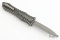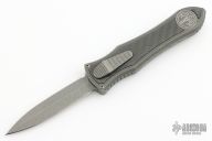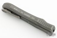 This knife is a Deadlock Model C by Grant and Gavin Hawk. It has a double-edged black blade. The handle has a Carbon Fiber inlays in the black titanium frame with a tip down spring clip, titanium. The thumb slide on the handle is also titanium and handle has a titanium overlay. Comes with a cloth pouch. Grant and Gavin Hawk set out to create a double action OTF with no blade play.... They did it, NO blade play. Comes with tool, cloth pouch. Excellent condition.
