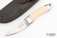 In closing, I would like to say that my knives are all made in my shop with my equipment. I use the very best grades of materials available. I do not outsource labor, nor do I use or condone the use of CNC machinery on knives that are represented to the public as being handmade. I purchase my blade steel in the form of bar stock and purchase the mechanical fasteners that I use to attach handle materials. I enlist the services of the talented Jere Davidson and Linda Karst to embellish my completed knives with engravings and scrimshaw. I entrust the knowledgeable of Bradley Stallsmith at Peters Heat Treating with all aspects of heat treating on all of my knives."