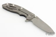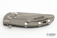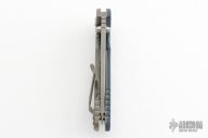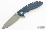 This XM-18 flipper from Rick Hinderer Knives features a 3.5" working finished blade, notched thumbrest and flipper, dual thumbstuds. The handle has a black/blue G-10 scale, and working finished titanium handle/clip. Clip can be mounted for tip up or down carry. Nice lockup, seating, and detent. Comes with the original box and papers. Excellent condition.