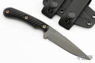 The sparrow is a compact bird and trout style fixed blade knife that excels in a concealed carry or everyday carry (EDC) capacity. You can use the Sparrow to cut an apple in the park without anyone being concerned that you have a dangerous weapon in your hand. It blends in well in both urban and rural settings and is a great companion for any type of adventure. The classic drop point blade is made from Magnacut stainless steel and has a Tungsten Cerakote finish for corrosion and glare resistance. The beveled and contoured G10 grips feature diagonal texturing for a not too aggressive, but still secure grip. The Sparrow comes with a molded kydex scabbard with two MAD straps that allow for scout-style carry (horizontal) and inside the waistband (IWB) vertical carry. It is also MOLLE compatible and can be set up to attach to PALS webbing on any pack, plate carrier, or similarly equipped gear.