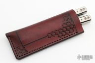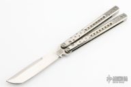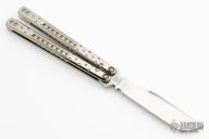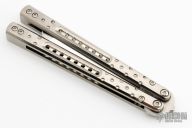 This Balisong by Palethius Designs features a satin finished blade. The handles are two-piece milled titanium channel construction. Comes with original box, hand tooled brown leather sheath and papers. Has a few light scuffs, otherwise excellent condition. Dated 3/21 and #2 of 2