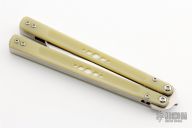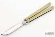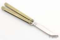 This Balisong by Palethius Designs features a hand rub satin finished blade. The handles have yellow G-10 scales, two-piece milled titanium channel construction. Comes with original box, hand tooled brown leather sheath and papers. Has a few light scuffs, otherwise excellent condition. Dated 11/20 and #14 of 14