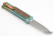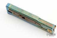 The smaller EXO-M has all the benefits of the full-size EXO from Reate Knives, but has even more to offer! For one, the smaller size makes this an even more convenient pocket knife. Plus, with a secure titanium pocket clip and lock, Reate ups their game with this gravity OTF Knife. A safety slide lock on the face of the handle is ideal for user safety, and the new pocket clip makes EDC carrying as easy as can be. By pinching the milled handle scales and dropping the frame at an angle, you can easily slide the blade in and out with nothing but gravity. If you haven't guessed it already, this means hours of quality fidgeting! That aside, the build and materials of this knife are Reate standard: simply excellent and endlessly functional. Like the EXO, the EXO-M boasts flawless fit and finish, smooth action, and a razor edge to meet your cutting needs. It includes a leather slip for safe carrying as well as the titanium clip.