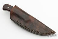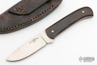 This Drop Point Hunter from T.W. Downing features a satin finished drop point blade, .108" blade stock and .995" blade depth, full tang construction. The handle has cocobolo scales, nickel silver pins. Includes leather sheath with belt loop. Excellent condition.