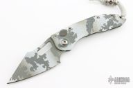 This Stitch Auto by Microtech Knives features an urban camo coated blade and false top edge, notched thumb and finger rests. The handle has an urban camo coated and milled aluminum handle with a titanium backspacer, stainless steel hardware and clip, tip up carry, lanyard hole at the butt. Comes with original box and papers lanyard bead attached. Dated 04/2023. Excellent condition.
