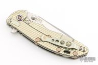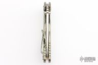 This XM-18 Spanto by Rick Hinderer Knives features a stonewashed blade, notched thumbrest and dual thumbstuds. The handle has a textured titanium scale, and stonewashed titanium handle/clip. Clip can be mounted for tip up or down carry. Nice lockup, seating, and detent. Blade Steel: S45VN.  Comes with a Hinderer box. Excellent condition.
