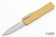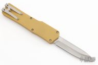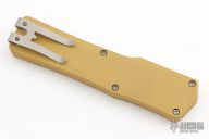 This Cleric OTF by Heretic Knives features a stonewashed blade. The handle has a tan aluminum frame with a stepped stainless steel thumbslide and stainless steel tip down clip. Comes with original box and papers. Excellent condition.