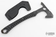 This Warrior Hawk by Spyderco was designed by Laci Szabo. It features a black D2 blade and tang with spike pole, .320" blade stock and 2.426" blade depth, full tang construction. The handle has black G-10 scales with an extended tang. Comes with kydex sheath. Excellent condition.