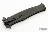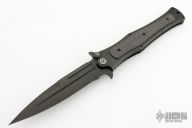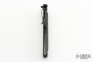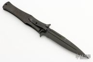 This Madd Maxx 5.5" Assisted Flipper is a Darrel Ralph Design executed by HTM Knifes. It features a black coated bayonet ground blade with false top edge, fullers, dual thumb studs and flipper. The handle is comprised of a blackened titanium frame with carbon fiber overlay over barrel spacers. Black coated steel tip down clip and lanyard hole in pommel. Includes padded and zippered case, original box and papers. Excellent condition.