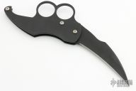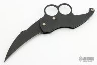 This knife by John Greco is a Laci Szabo design, it features a black coated hawkbill blade with knuckle friction bar. The handle has a black coated stainless steel frame. Has some minor wear on the frame, otherwise excellent condition.