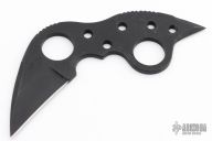 This Military Karambit by Black Cloud is a Laci Szabo design features a black blade with notched thumbrest, .196" blade stock and 1.684" blade depth. Has light scuffs, otherwise excellent condition.