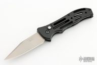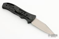 This auto by C Jul Herbertz features a bead blasted blade. The handle has a black coated aluminum frame with a tip down stainless steel clip. Has some scratches/wear on the frame, otherwise good condition.
