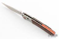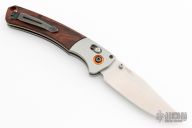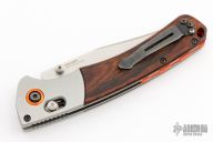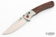 Benchmade Hunt series knives make hunting chores a breeze with a combination of high performance materials and knife design know-how. The Crooked River folder employs premium CPM-S30V stainless steel, for a long-lasting, super sharp cutting edge. The handle of the 15080-1 Crooked River is outfitted with tumbled titanium bolsters and contoured wood scales over stainless steel liners. An orange G-10 backspacer and anodized aluminum pivot ring add a visual pop to this modern hunting knife. The Crooked River has the ambidextrous AXIS lock, a reversible pocket clip, and thumb stud openers to cater to every user. Excellent condition. Comes with original box and papers.