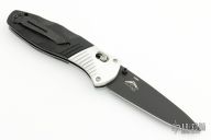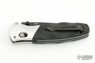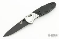 This 581 Barrage by Benchmade features a black drop point blade with AXIS assist locking mechanism. The handle has milled aluminum bolsters and carved black G10 scales. It has a milled g10 backspacer, a lanyard hole at the butt, and a reversible tip up carry clip. Nice action, lockup and blade seating. Excellent condition. Comes with original box and papers.