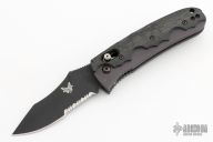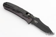 This Auto Resistor from Benchmade features a black coated partially serrated blade. Ambidextrous Auto AXIS mechanism with integrated safety. The handle has black G-10 scales over anodized aluminum frame, tip up reversible black stainless steel clip. Has some scuffs, otherwise good condition.