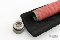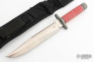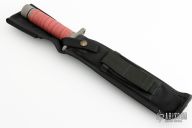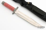 This SF-10 from Al Mar Knives is a large hollow handled survival knife with super sharp serrations on spine, .230" stock and 1.553" blade depth. Screw off handle cap and cord wrapped handle. Comes with a black nylon sheath with belt loop. Hard to find piece. Has some light scuffs, otherwise excellent condition. Comes with a zippered case.