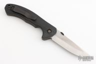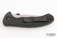 This "Tim Kennedy" Prototype by Emerson Knives features a stonewashed blade with satin bevels, thumbdisc and notched thumbrest. The handle has contoured black G-10 scales, titanium liners, barrel spacers and tip up black stainless steel clip. New from Blade Show 2023. Prototype. Comes with original box. New condition.