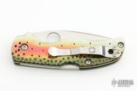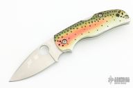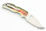 Abel Reels not only manufactures the world’s finest fishing tackle, they also embellish their products with a proprietary artistic process that transforms them into extraordinary, fully functional works of art. Spyderco is proud to collaborate with Abel Reels on a unique series of knives that showcases the exceptional talents of both companies. The foundation of these knives is a remarkable variation of the Native 5 that features an ultra-corrosion-resistant LC200N blade and a handle precision machined from aircraft-quality aluminum. Once Spyderco’s manufacturing processes are complete, the handle components are sent to Abel Reels’ team of artists who hand paint them with special chemical dyes to create photorealistic patterns of popular game fish. Their incredibly painstaking multi-stage anodizing process takes many hours and, because it is entirely done by hand, makes every pattern a one-of-a-kind work of art. Abel is the only company in the world capable of performing this proprietary process and Spyderco is honored to partner with them in creating these heirloom-quality knives.