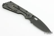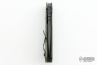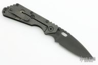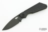 This Mick Strider SMF Fatty framelock folder features a black blade with thumbhole and notched thumbrest. The handle has a black aluminum and flamed titanium frame with titanium clip, tip up carry. Black lockbar stabilizer. Jimping on blade spine. Nice lockup, detent, and blade seating. New condition.