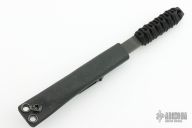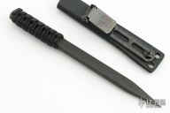 In 1988, he began making specialized knives for use by the military. This turned out to be fortunate turn of events, both for Mick and for the knife using world at large. Mick’s approach was to not get burdened by the weight of past designs. He started with a tabula rasa, a clean slate, informed only by his own experiences and knowledge of what a soldier needed in a knife. The knives he made didn’t look like the hunter-inspired knives seen in most PXs; instead they were almost brutish in their functionality: beefy, solid, and with unbreakable ¼” stock full tangs. These knives were the first indication of his innovative approach: in addition to their utilitarian design, the knives carried a subdued finish and subdued sheaths. No one carrying a Strider knife was going to be spotted because of sunlight glinting off of polished steel or a glossy leather sheath. Soldiers, policemen, and other men going into harm’s way couldn’t buy them fast enough. Mick sampled some good ideas, but made them great. For instance, he was not the first to wrap a knife handle with paracord, but he was the first to do it in a way that was tough enough for sustained infantry use. His knife line grew over the following years to include different varieties of fixed blades, all distinctive and many with specialized uses. But constant in all of them was a disregard for convention, and a desire to try new ideas. An example of this was the Ajax – it featured a very wide blade surface clearly designed to inflict damage. It drew on the weapons carried by Roman legionnaires, yet was modern and usable in the 21stCentury battlefield. Mick also worked on his technical skills, always striving to become better at the physical craft. At the 2002 Blade Show, a group of the best tactical knifemakers in the country decided to compete with each other to produce the most innovative and interesting fixed “battle blade” at the show. Mick’s entry, an incredible integral knife made out of ½” titanium stock with a zippered composite blade, gorgeous handles, and integral guard was the unanimous winner, and effectively retired the competition.