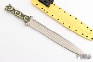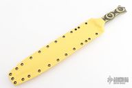 This FMV14 by Busse Knives features a competition finished double edged blade with .241" blade stock and 1.735" blade depth, full tang construction with black/yellow G-10 scales. Excellent condition. Comes with a custom Kydex sheath by BuyBrown.