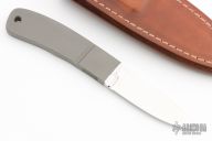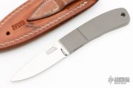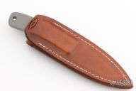 This Hip Pocket Hunter Prototype by Marcus Lin was made from the original pattern at the Loveless Shop. It features a mirror polished blade with .165" blade stock and .932" blade depth at the ricasso, integral bead blasted handle with checkered index finger rest. Comes with a brown leather sheath. New from maker! #523 on blade.