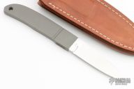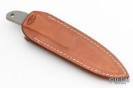 This Stiff Horn Prototype by Marcus Lin was made from the original pattern at the Loveless Shop. It features a mirror polished blade with .165" blade stock and .816" blade depth at the ricasso, integral bead blasted handle with checkered index finger rest. Comes with a brown leather sheath. New from maker! #523 on blade.