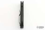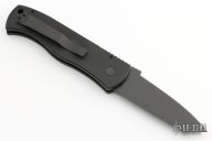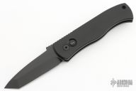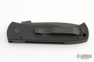 This Emerson/Pro-Tech CQC7 automatic has a chisel ground black sterile blade with a plain edge and a solid black aluminum handle. Black stainless steel clip. Coil spring. Comes with original box and papers. New from maker!