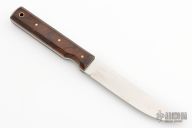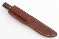 This Model 10 Salt Fisherman and Household Utility features a satin finish drop point blade with notched thumbrest, .113" blade stock and .867" blade depth. The handle is comprised of desert ironwood scales over full tang construction. Brass lanyard tube with lanyard in pommel. Includes a brown leather sheath. Excellent condition.