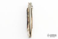 This Vintage leverlock auto by Bonsa features a satin finished blade, nickel silver bolsters, stag scales, and brass liners and nickel silver pins. Opens with a nice snap. No blade peak. Like new action. Has a few light scratches, otherwise excellent condition.