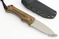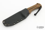 This Bloodshark by Tracker Dan and John Gray features a bead blasted drop point blade with a full tang construction, .113" Blade Stock and 1.085" Blade Depth.  The handle features paper micarta scales with canvas micarta pins and lanyard holes. Comes with a kydex sheath. Excellent condition.