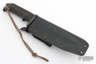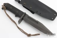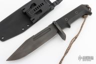 "For those of you who love the TBF (Too Big to Fail) Breakdown Fighter, but find the size a little too daunting, the USMC Raider is just for you! Our slightly smaller version of the TBF maintains all the wicked attributes of the larger knife, with an easy-to-carry size. It has the same radical combo grind using flat grinding on the tip for strength and hollow grinding on the main edge for razor sharp use over the years. The serrations are double row and razor sharp. The hardened stainless steel hilt is a built-in crowbar and unbelievably tough. Finally, the through-tang knife completely disassembles for thorough cleaning with a single Allen wrench. Has a kydex sheath. Has a few light scuffs, otherwise excellent condition.