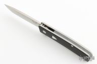Blurring the lines between traditional design and modern technology, the 601 Tengu epitomizes the style of Jared Oeser's custom designs. This slim and classy flipper is packed with detail, from the CPM-20CV blade to the dual-colored G10 handles. Complete with a black leather carry sleeve, the Tengu is bound to impress those looking for something different.